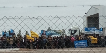 Trabajadores rurales del sector olivícola se movilizaron este viernes frente a la Cámara Olivícola Riojana, en la ciudad de La...