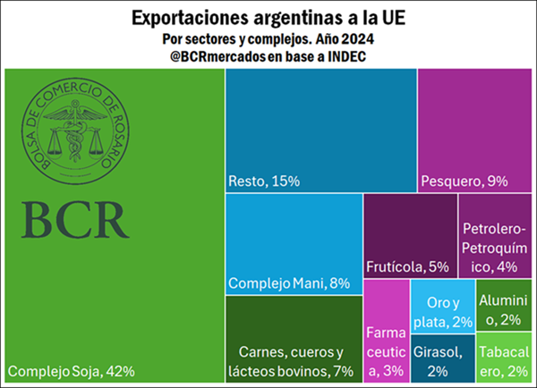 “De aplicarse, espera tener un interesante impacto sobre el complejo soja argentino”, aseguran desde la entidad rosarina. Asimismo, si se cumple con la rebaja de aranceles y el establecimiento de nuevas cuotas de exportación, otros sectores clave del agro nacional, como carnes, lácteos, cereales, arroz, miel o ajo, se verían motorizados por el acuerdo.