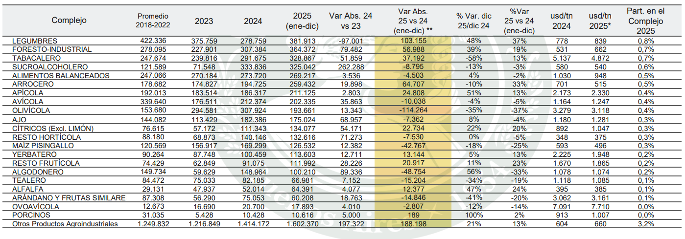 Esto, según el balance del CAA, fue posible a pesar de que el Tipo de Cambio Real Multilateral (BCRA) disminuyó 1% en diciembre, acumulando una 6% de baja respecto del promedio de 2024. Es decir, el crecimiento se dio en un marco de menor competitividad cambiaria.