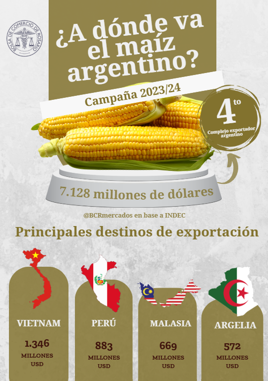 “Todos estos países importan maíz argentino en una porción muy grande para alimentación animal, en vista de que sus poblaciones que demandan cada vez más carnes en sus consumos”, indicó el trabajo de la Bolsa.