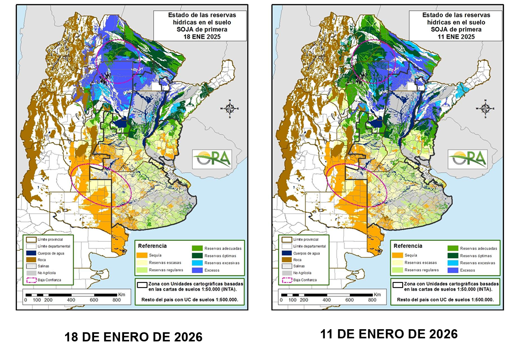 Por su parte, la provincia de Buenos Aires mantiene reservas escasas a adecuadas, con algunas mejoras debido a las lluvias en algunos sectores del sur, sureste y norte de la provincia.