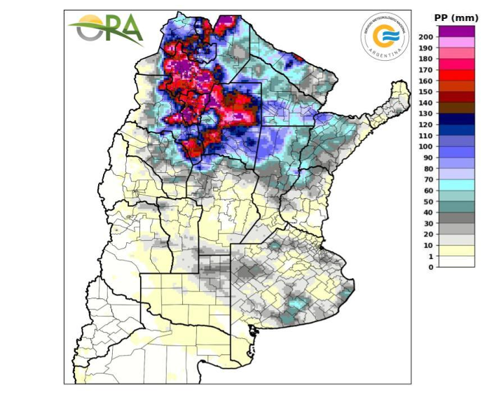 El reciente reporte de la Oficina de Riesgo Agropecuario (ORA) destacó las abundantes lluvias ocurridas en los últimos días en el NOA y NEA, que dejaron suelos con excesos y complican la campaña. En particular, resaltan los registros obtenidos en Metán y Tartagal, en Salta; Tucumán; Resistencia, en Chaco; Corrientes; Catamarca y Ceres, en el norte de Santa Fe.