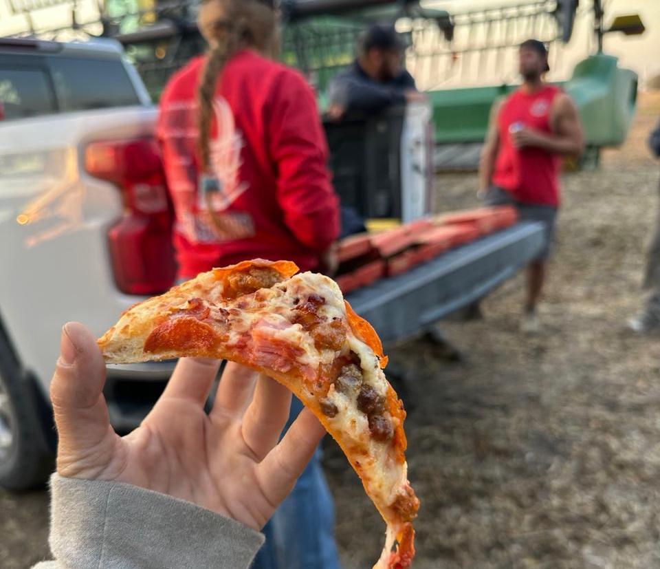 -El gasto de combustible. En Argentina en la logística se trata de no gastar tanto combustible. Acá la camioneta va y viene todo el tiempo. Eso si, las maquinarias se dejan en el campo. Es distinta la logística, siempre hay una camioneta de apoyo y no te quedás durmiendo en el campo. Las comidas se comen en la maquinaria. No se hacen campamento. Lo único que se hace de comer juntos, al menos en este campo, son los sábados de pizza de cosecha. Comemos entre las máquinas. Otra cosa: no hay tanto silobolsa, aunque vi algunas este año, todo va todo al tren o al silo propio. Y en estos pueblitos hay mucha actividad industrial, plantas de bioetanol, producción de cerdo, de pavo.