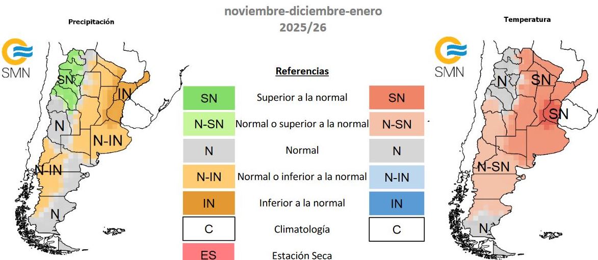 Sin embargo, el pronóstico mencionaba probabilidad de precipitaciones inferiores a las normales en la zona pampeana y el Litoral. En lo que respecta a las temperaturas, el pronóstico del SMN preveía valores superiores a los normales sobre gran parte de las regiones productivas.