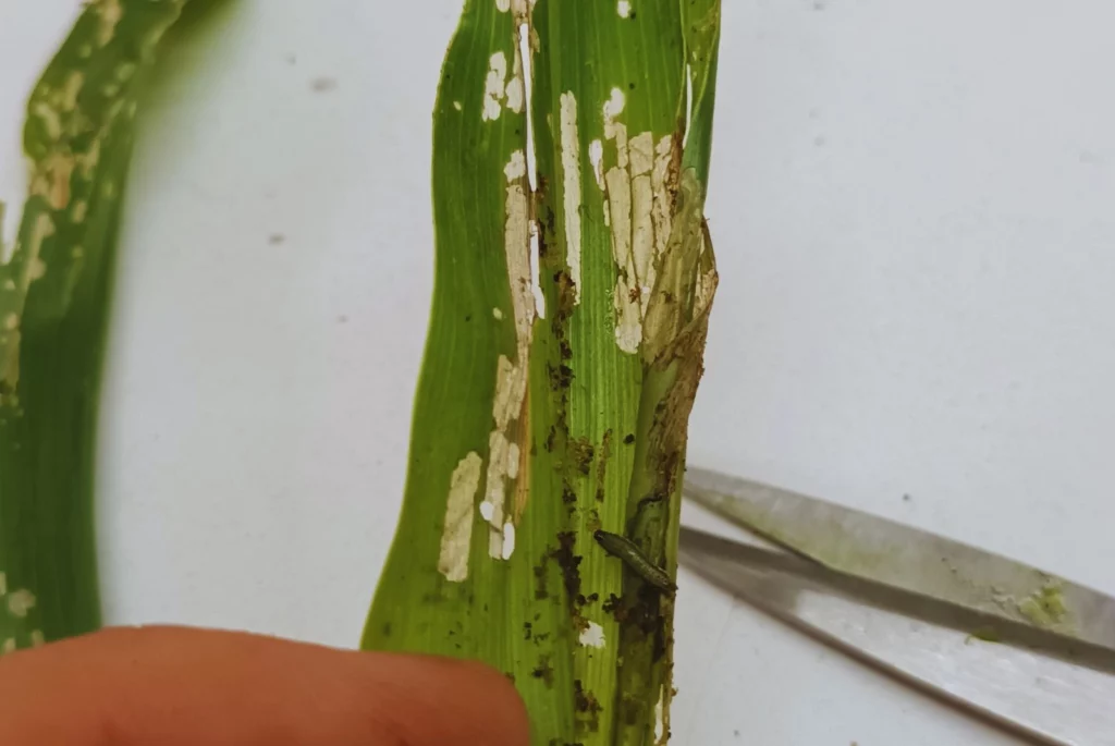 El técnico explicó que la oruga actúa principalmente como defoliadora, alimentándose del tejido de las hojas en el interior del cogollo. Por eso, el control temprano resulta clave. “Lo más importante es detectar los daños iniciales. Si se deja avanzar, el control químico pierde eficacia y las pérdidas en rendimiento pueden ser significativas”, agregó.