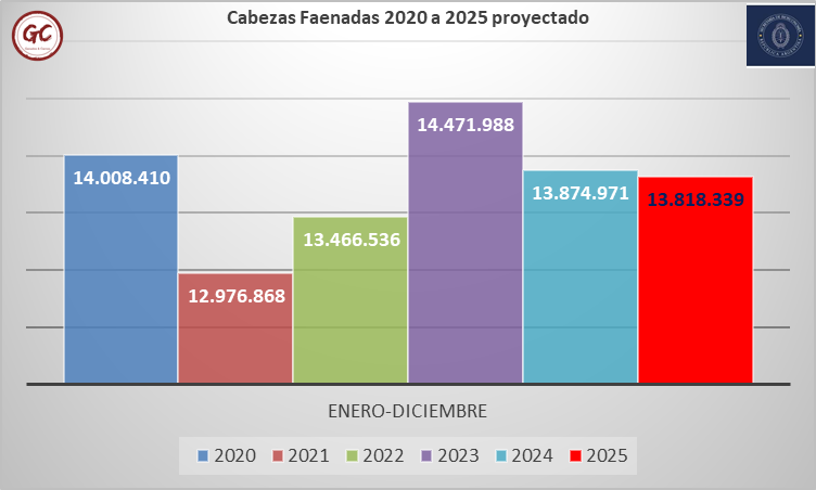 - Por un lado, con el cierre de los números de cabezas faenadas en septiembre, “vemos que prácticamente es la misma cantidad de cabezas que las faenadas en 2024, y una 760.000 cabezas menos que en 2023, año de liquidación por sequía”. Por lo tanto, Costamagna avisa que “debemos esperar que la faena de este año sea similar a la del año pasado”.
