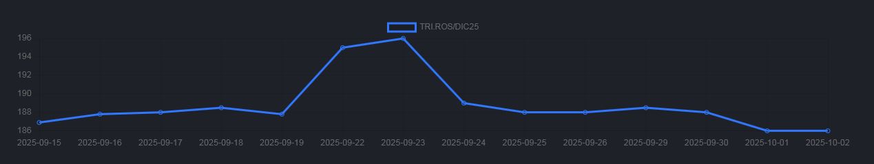 Con la implementación del régimen de suspensión de derechos de exportación, el precio del contrato Trigo Rosario Diciembre A3 pasó de 187,0 u$s/tonelada el viernes 19 de septiembre a 195,0 y 196,0 los primeros dos días de vigencia del programa (22 y 23 de septiembre), pero el último día de (24) cayó a 189,0 u$s/tonelada para luego regresar al nivel previo al de la implementación de la medida.