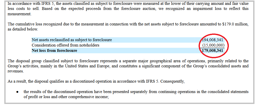 A la fecha de esta carta, el proceso de ejecución hipotecaria aún no ha concluido formalmente y seguimos negociando un acuerdo de transición con los tenedores de bonos. La situación de la deuda residual tras la contraprestación de 15 millones de dólares aún no se ha definido, y mantendremos informados a los accionistas sobre el progreso de este proceso.
