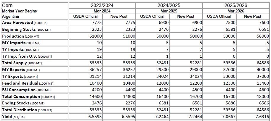 En ese marco, la oficina del USDA en Buenos Aires estima que en el ciclo 2025/26 el consumo interno de maíz en la Argentina sería de 18,0 millones de toneladas versus una previsión de 16,7 millones en el último informa oficial de oferta y demanda global de productos agroindustriales de ese organismo.