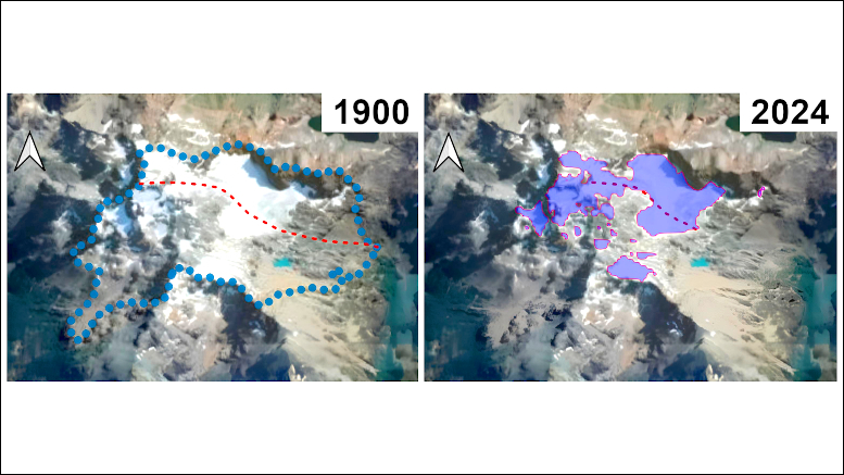 La investigación consistió en analizar la evolución del glaciar desde 1900 -el fin de la última “Pequeña Edad de Hielo2- hasta 2024. Se basó en imágenes satelitales y también en recorridas a pie. Los resultados de Anneris fueron contundentes: “En 124 años, el macizo perdió el 80% de su superficie. Pero esa pérdida no ocurrió siempre a la misma velocidad. Hasta 1979, solo se redujo a razón de 1 hectárea por año; después, la tasa ascendió a 3,5 hectáreas al año, en promedio”, detalló Stieben.