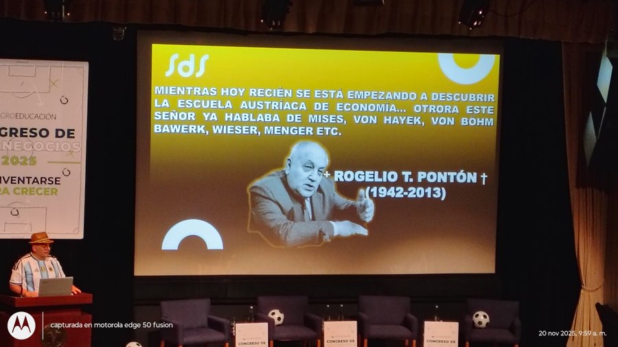 Salvador Distéfano arrancó su disertación en el reciente Congreso de Agronegocios de Agroeducación, el jueves en Rosario, con una homenaje a Rogelio Pontón, quien hasta su muerte fuera director de Estudios Económicos de la Bolsa de Comercio de Rosario y ferviente defensor de la escuela austríaca a la que adhiere el presidente Javier Milei.