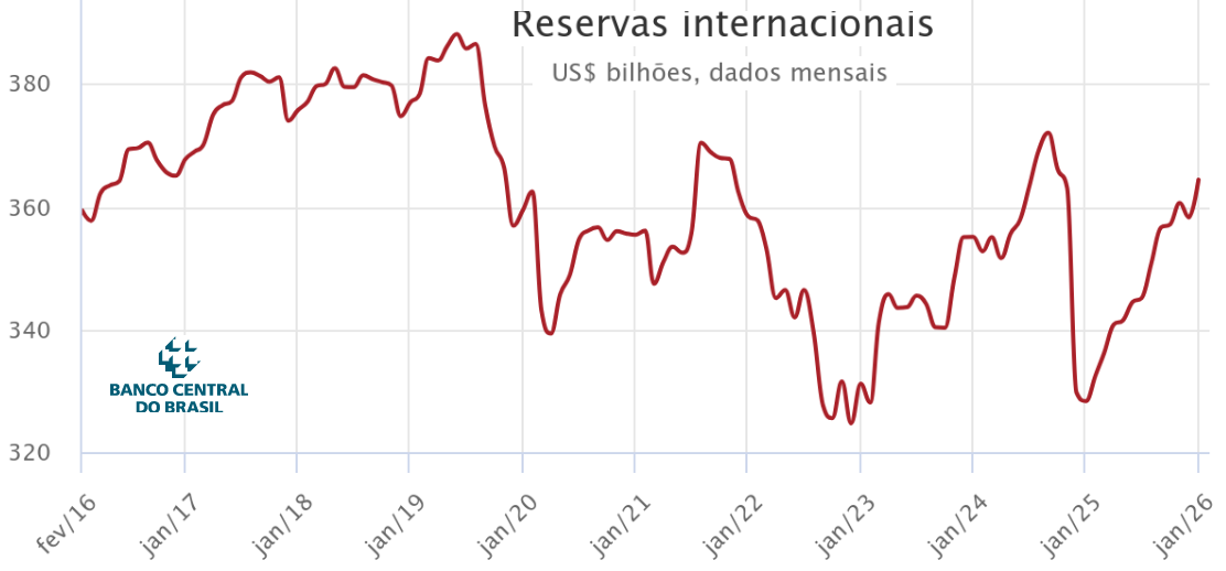 Ese fenómeno se combina con un crecimiento progresivo de las reservas internacionales en poder del Banco Central de Brasil como producto de un crecimiento de las exportaciones agroindustriales, mineras y energéticas.