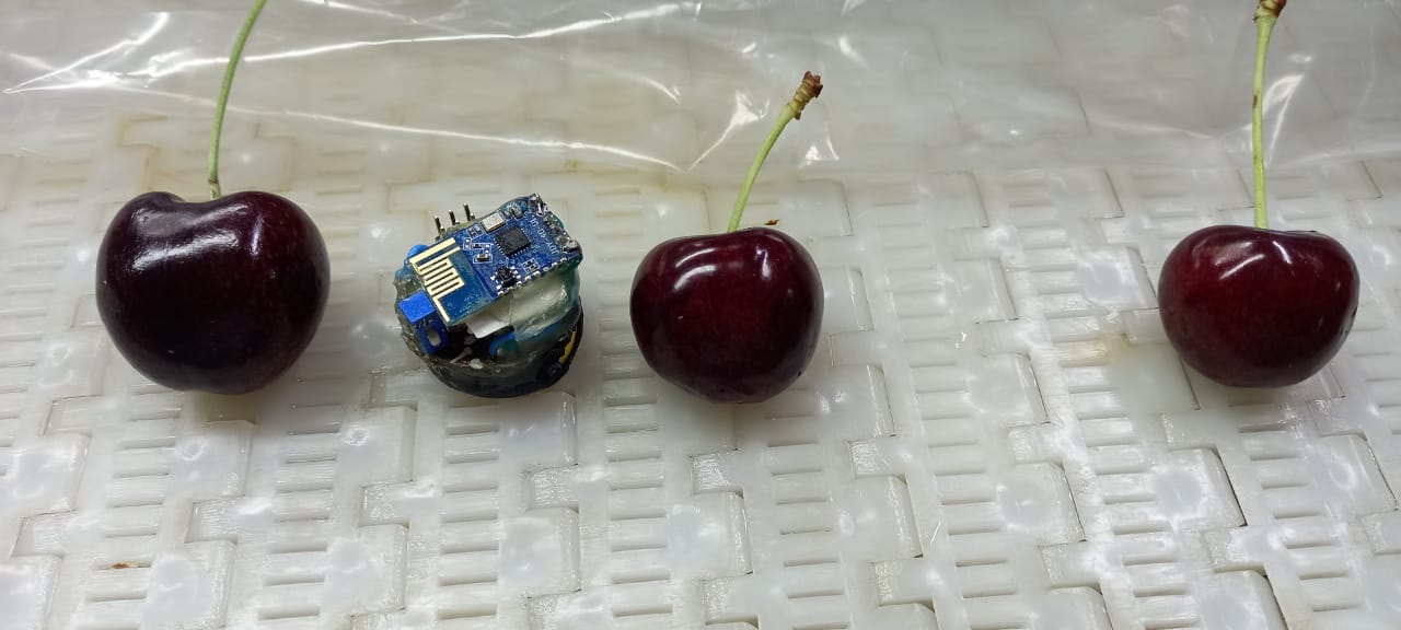 El dispositivo emula a una cereza convencional y está diseñado para viajar junto a ellas. Consta de un sensor de acelerómetro, un microcontrolador y una batería. Puede transmitir los datos en tiempo real o bien almacenarlos para ser leídos posteriormente. Mediante esas mediciones, el objetivo último es reducir al máximo las pérdidas por golpes o “pitting”, que pueden alcanzar, en los casos más extremos, el 40% de la fruta enviada.