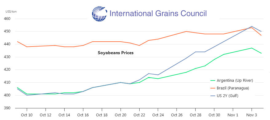 Luego del anuncio del restablecimiento de las negociaciones comerciales entre EE.UU. y China, el valor FOB del poroto en Golfo de México (EE.UU.) comenzó a experimentar una recuperación progresiva para arbitrarse con el FOB Paranaguá (Brasil).