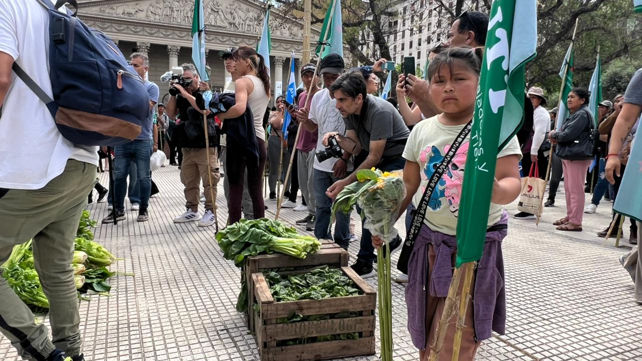 Cientos de cajones de fruta y verdura irrumpieron hoy en Plaza de Mayo: Pequeños productores de todo el país realizaron un “alimentazo” bajo la consigna “basta de hambre”