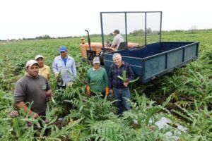 -Sí, se cosecha a mano y hay que hacer varias pasadas, porque dentro de la misma planta, los alcauciles van apareciendo o van tomando tamaño en distinto tiempo. A su vez, las plantas tampoco son uniformes. Entonces, por ahí, un lote lo cosechamos durante dos meses, según como venga el clima se le hacen dos o tres pasadas por semana.