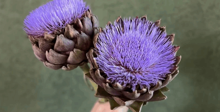 -Claro, antes que se abra, consumimos las brácteas y y todo el el corazón, que es lo lo más rico. Después, si lo dejamos, se abre como una flor de cardo, de un color violeta hermoso.