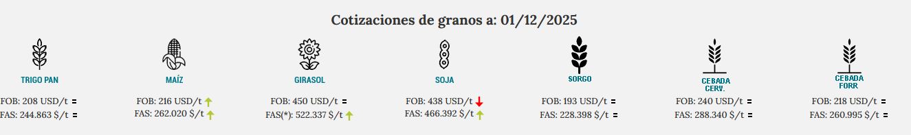 En ese marco, el valor FOB oficial de la cebada forrajera argentina en el mercado spot se ubicó este lunes en 218 u$s/tonelada, mientras que el precio FOB del trigo pan fue de 208 u$s/tonelada.