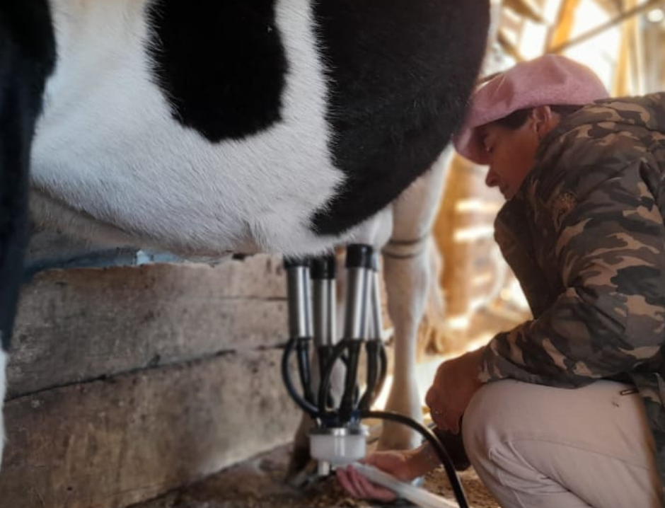 Asi como ella fue sumando voluntades, fue agregando vacas para reactivar lo que su papá había iniciado con tanto ímpetu. “Empecé con tres vacas y después Manuel (su pareja actual) me trajo cinco vacas que tenía, porque él había estado ordeñando y ya no quería hacerlo más, asique ahí arrancamos a mano con José mi colaborador”, relata.