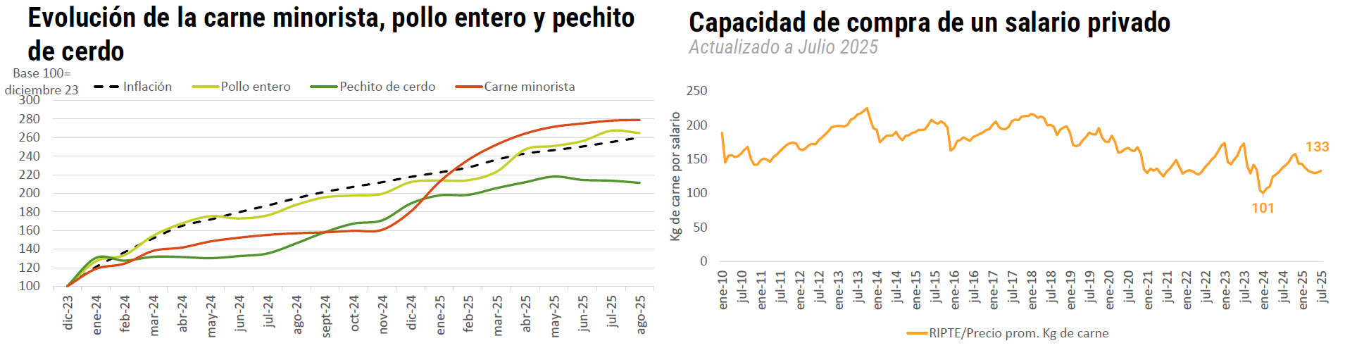 A nivel coyuntural, gracias a la reducción de la alícuota de derechos de exportación para la carne vacuna del 6,7% al 5,0% instrumentada el pasado 31 de julio (con excepción de la categoría vaca, que está libre de ese tributo) y la depreciación de tipo de cambio, la competitividad de los sectores exportadores mejoró en las últimas semanas.