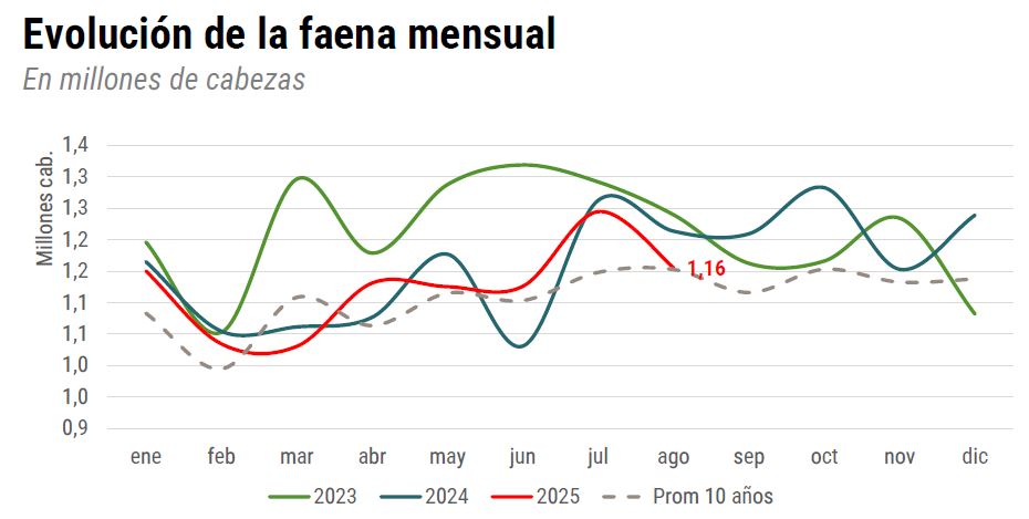 Los niveles de faena bovina en la Argentina se mantienen sostenidos y se espera, gracias a un leve aumento del peso medio de faena, que la producción de carne termine el presente año con niveles similares a los registrados en 2024.