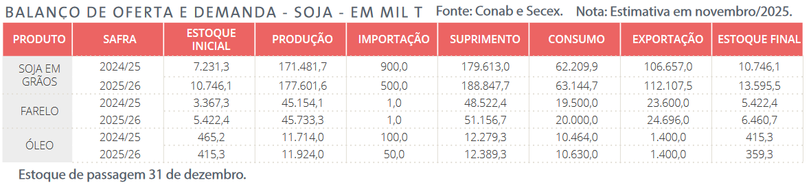El organismo oficial brasileño Conab proyecta que en 2026 el país exportará un volumen récord histórico de 112,1 millones de toneladas de soja, una cifra 5,1% superior a la del presente año. La “temporada alta” comercial de la soja brasileña se registra entre los meses de febrero y julio.