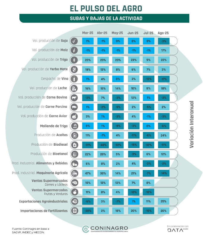 La Confederación Intercooperativa Agropecuaria (Coninagro) presentó una nueva edición de su informe El Pulso del Agro, en la que se refleja un panorama heterogéneo de la actividad agroindustrial argentina. Una especie de radiografía donde se analizan los indicadores de las principales actividades sectoriales.