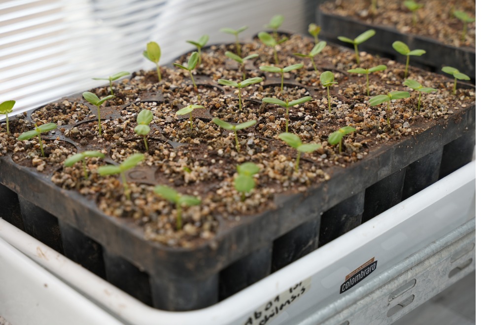 El esquema de trabajo contempla la producción de plantines bajo condiciones controladas, con etapas que incluyen germinación, desarrollo en invernadero y posterior adaptación antes de su entrega para implantación en campo.