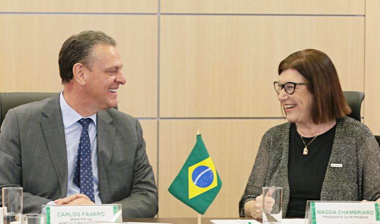 El ministro de Agricultura y Ganadería de Brasil, Carlos Fávaro, recibió esta semana a la presidenta de la estatal Petrobras, Magda Chambriard, en la sede del ministerio que preside para tratar cuestiones relativas a la agenda bioenergética.