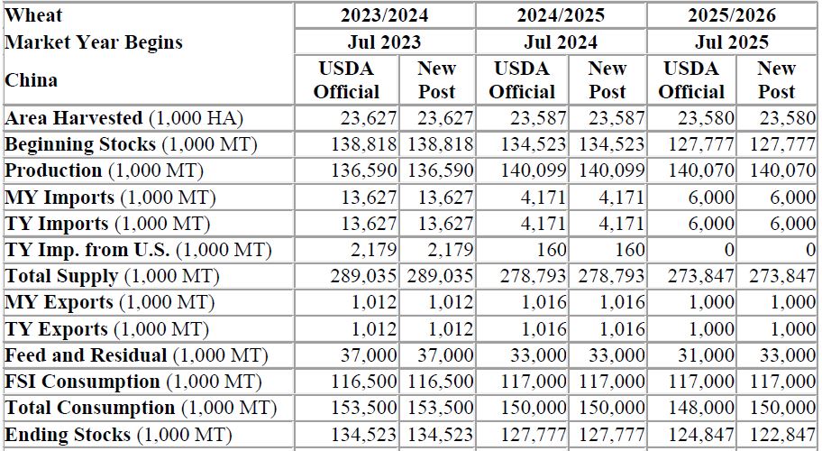 Para 2025/26 el USDA prevé importaciones china de trigo por al menos 6,0 millones de toneladas versus 4,17 millones en 2024/25. China ha comenzado recientemente a comprar trigo de origen argentino para diversificar su red de proveedores de cereal. En diciembre pasado China también anunció la apertura de su mercado al salvado de trigo ruso.