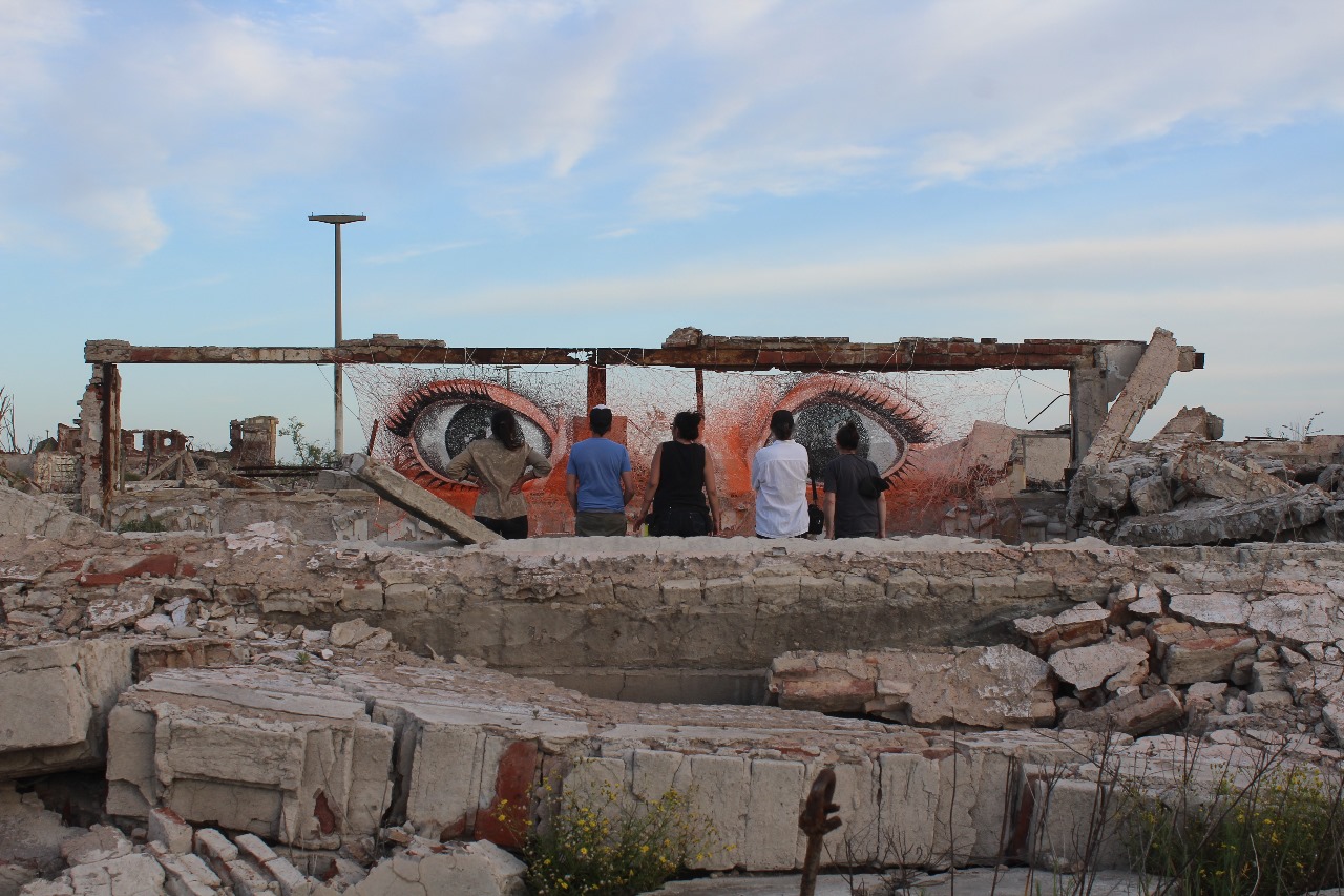 “Nosotros con un grupo de artistas ya veníamos trabajando lo distópico así que estábamos en sintonía, pero luego de visitar varias veces el lugar se tornó muy denso y llegó un punto donde ya no queríamos seguir trabajando con la muerte ni con lo destruido. Entonces empezamos a escuchar a los vecinos que de algún modo manifestaban no querer quedarse atrapados en esa imagen de desolación. Y ahí fue cuando decidimos cambiar el enfoque: trabajar no solo con las ruinas, sino con lo que estaba vivo”.