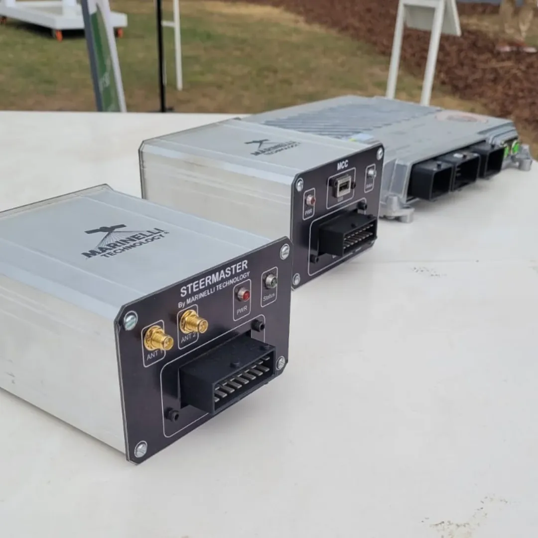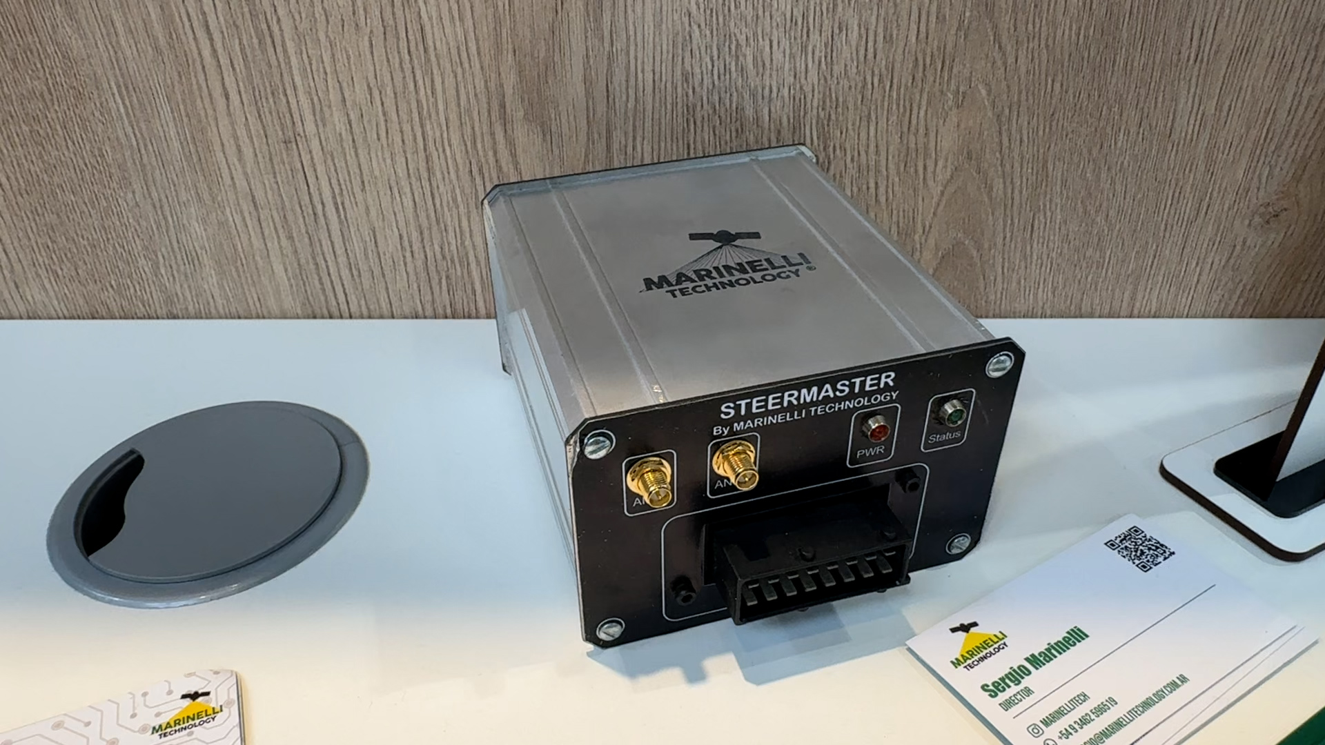 El equipo que llevó a Alemania es, a simple vista, una caja electrónica que no dice mucho. Gris, más chica que una caja de zapatos y unos enchufes raros.. En los hechos, es un sistema integral autónomo que puede integrarse a tractores, pulverizadoras y otro tipo de maquinaria. “Se incorpora este sistema a un equipo y se lo convierte en totalmente autónomo. Puede trabajar solo o manejarse con control remoto”, explicó Marinelli.