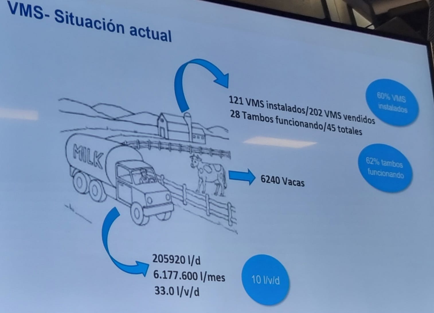 Actualmente De Laval tiene 121 robots VMS instalados funcionando en 28 tambos y 202 vendidos para otras 17 unidades productivas. Se atienden 6.240 vacas, con unos 205 mil litros por día y un promedio de 33 litros por animal diariamente.