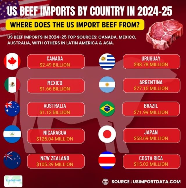 Las propias estadísticas oficiales muestran que las exportaciones sudamericanas de carne bovina enviadas a EE.UU. son marginales, dado que el grueso de ese negocio es gestionado por los socios comerciales de México, Canadá, Australia y Nueva Zelanda.