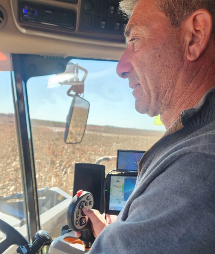 -Mi papá trabajó muchos años con una familia que tenía seis cosechadoras y a mí me enloquecía ir con él arriba de la máquina, sea la Vasalli 316, o la Senor, máquinas emblemáticas. Me enloqueció toda la vida hasta el día de hoy. Mi oficina hoy es la cabina de la cosechadora. Y los que tenían campo eran mi abuelo, papá de mi mamá, y mi tío, hermano de mi mamá. Yo hoy, además de mi campo, le trabajo a mi mamá.