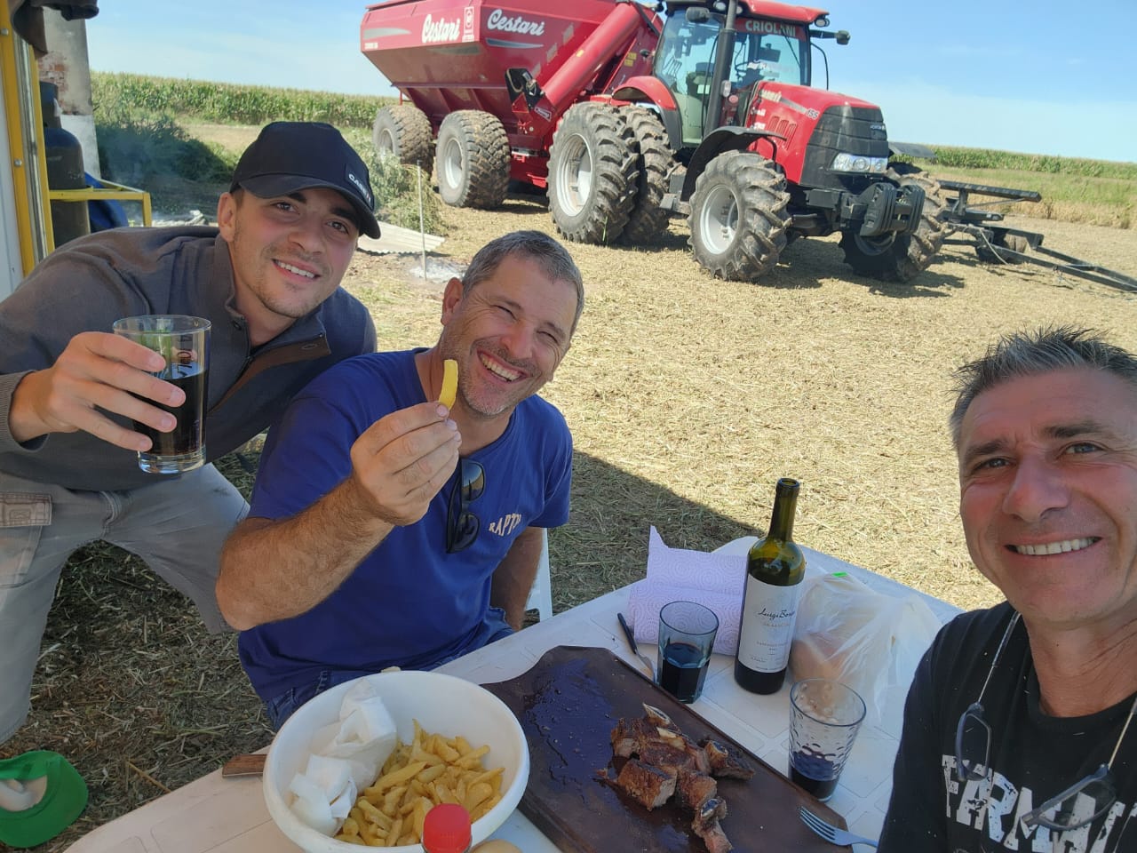 -El asado seguro, pero también agarramos la moda con mi equipo de hacer cosas al disco y al horno, sea carne o pollo. Casi siempre a la noche. Porque al mediodía son sanguches. Eso me mata. ¡Engordo entre 5 y 8 kilos cada cosecha! Pero la verdad que, en general, se come muy bien. Hoy no es como antes la casilla, tenés más comodidades, internet, heladeras solares, televisión, tenemos todo.