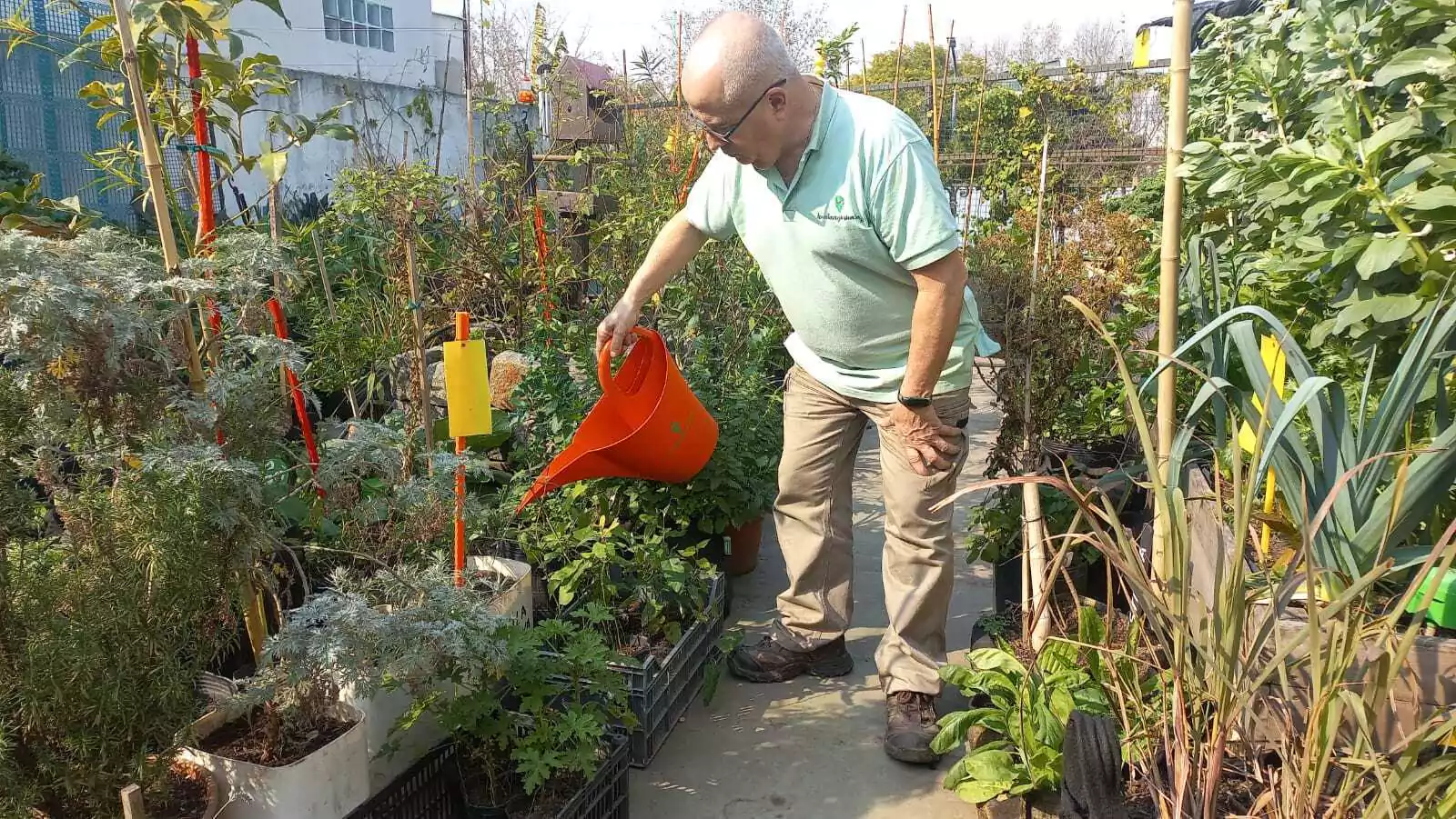 La terraza de Carlos no parece una terraza: parece un pequeño oasis productivo. Allí conviven verduras, aromáticas, frutales y flores en una densidad que sorprende. Él es el creador de Huerta Orgánica, un proyecto que enseña a cultivar tanto en espacios reducidos como en el suelo. Su mensaje es claro: se puede producir alimento propio en la ciudad.