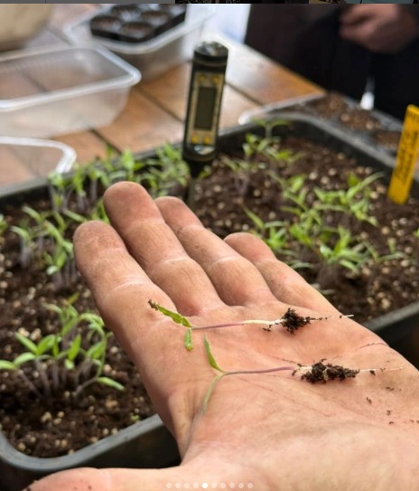 Electricista de profesión, en una charla con De Raiz Carlos cuenta que comenzó a cultivar antes de la pandemia. Subía al techo con una escalera y armaba macetas con lo que tenía a mano. Primero aprendió a hacer compost y luego fue probando con distintas plantas, siempre a base de ensayo y error.