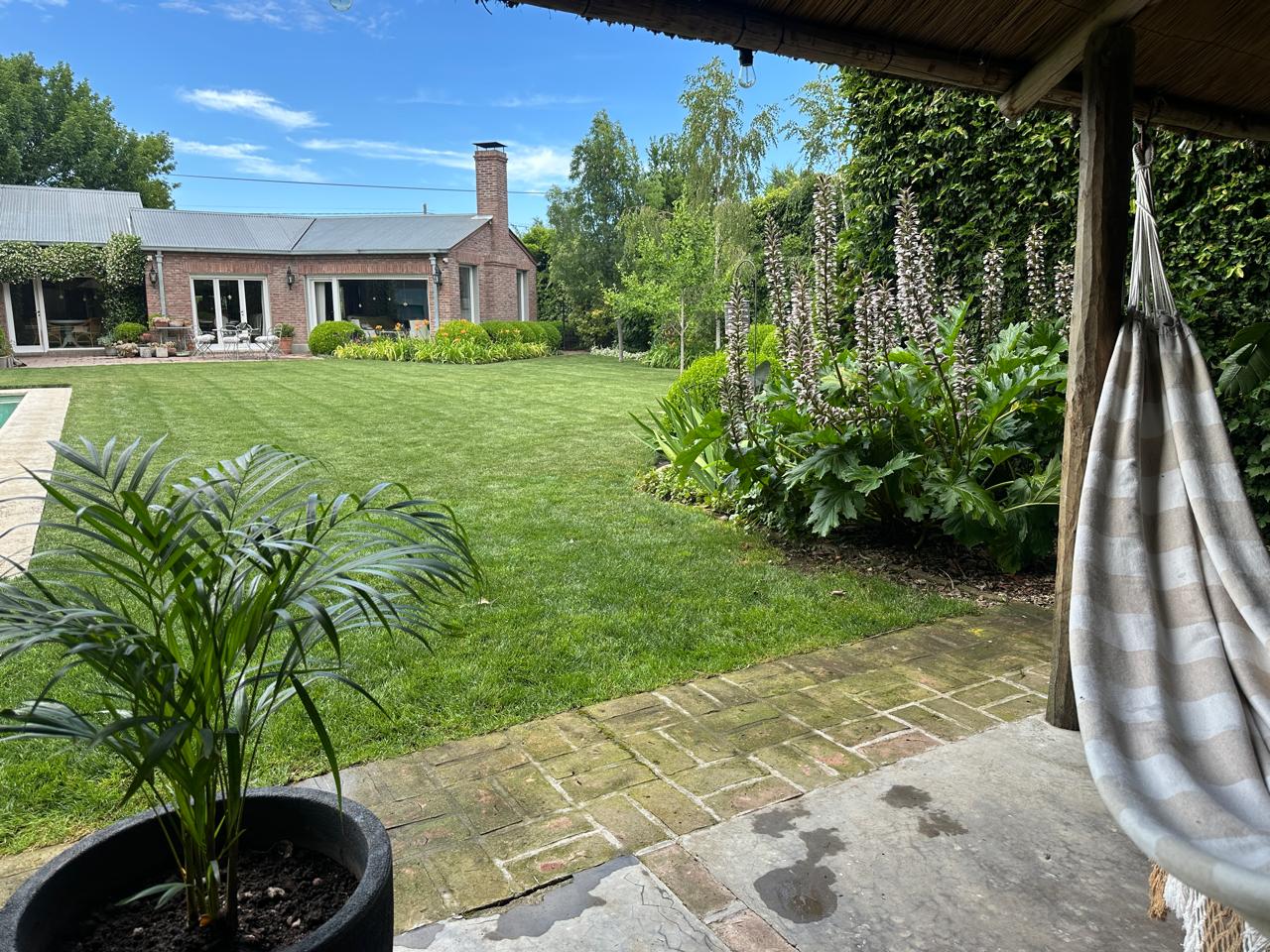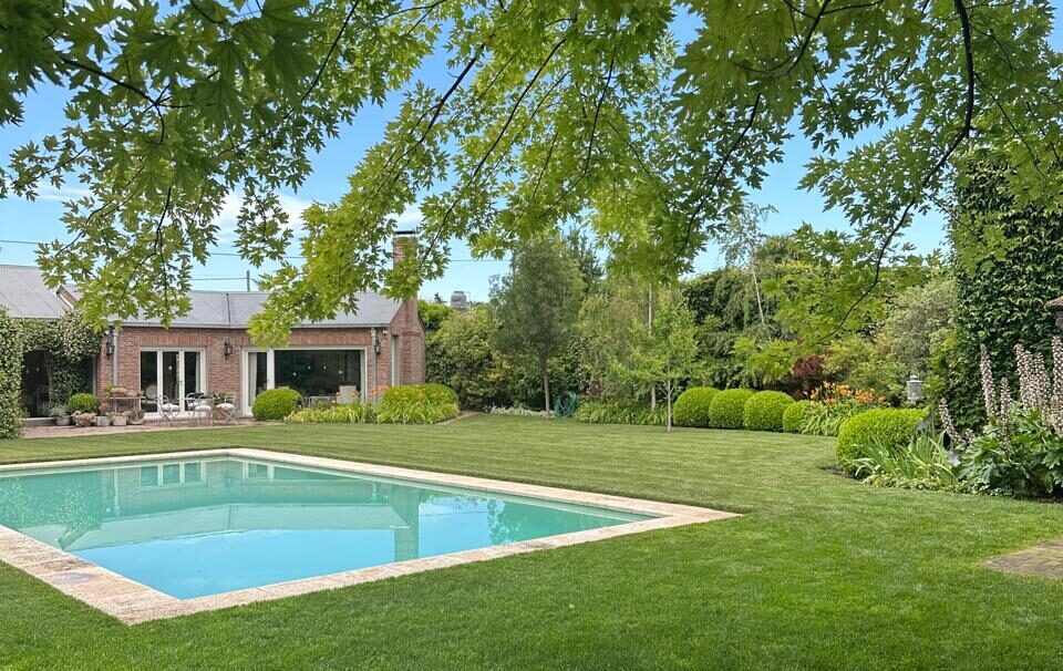 En verano entra en una etapa de transición que exige más atención, con uno o dos cortes por semana según el ritmo de crecimiento. El riego está instalado y se usa de acuerdo al clima: en una primavera lluviosa casi no hizo falta activarlo. Más que un jardín terminado, es un jardín en uso, que se ajusta año a año. Creció junto con la familia y hoy combina canteros variados con un césped bien mantenido que ordena y conecta todo el conjunto.