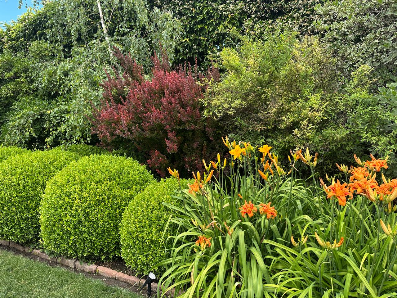 Con los años hubo árboles que se sacaron y otros que se plantaron, sectores que pasaron a tener más sombra y canteros que cambiaron de colores o de especies según el uso del espacio y el movimiento de la familia. Las dalias se dejan en tierra y se marcan para no perderlas, los lirios y bulbos van apareciendo en sus momentos, las hortensias empiezan a ganar lugar en canteros más nuevos y los rosales se sostienen donde todavía reciben buen sol.