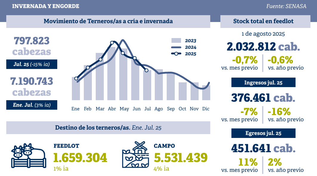 “Una lectura similar corresponde a los planteos más intensivos de engorde. En este caso, el margen bruto estimado por cabeza terminada en feedlots es de 16.376 pesos, cuatro veces superior al promedio de la serie. Por otro lado, el margen de un sistema de recría más terminación a corral —según los parámetros del modelo utilizado— arroja aproximadamente 41.579 por cabeza, frente a más de 14.000 de pérdida que marca el promedio histórico”, finalizó la analista.