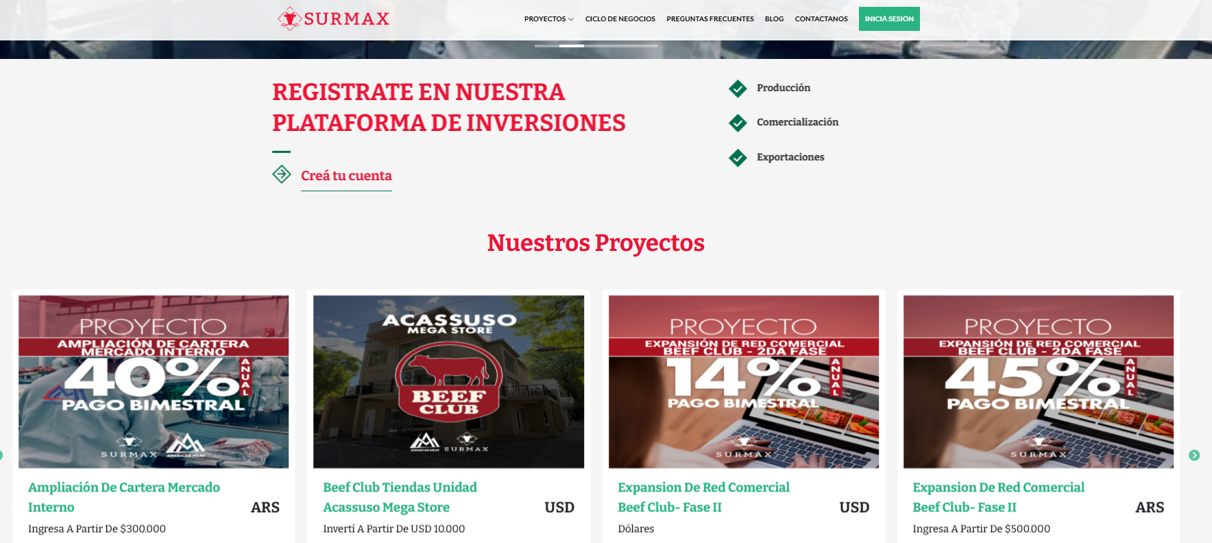 La página del fondo de inversiones Surmax todavía sigue en línea, invitando a los usuarios a invertir en carne argentina directamente desde Internet, sin intermediarios de ningún tipo y creando una cuenta con suma facilidad. El cuento del tío: uno puede convertirse en ganadero y feedlotero en unos pocos minutos.