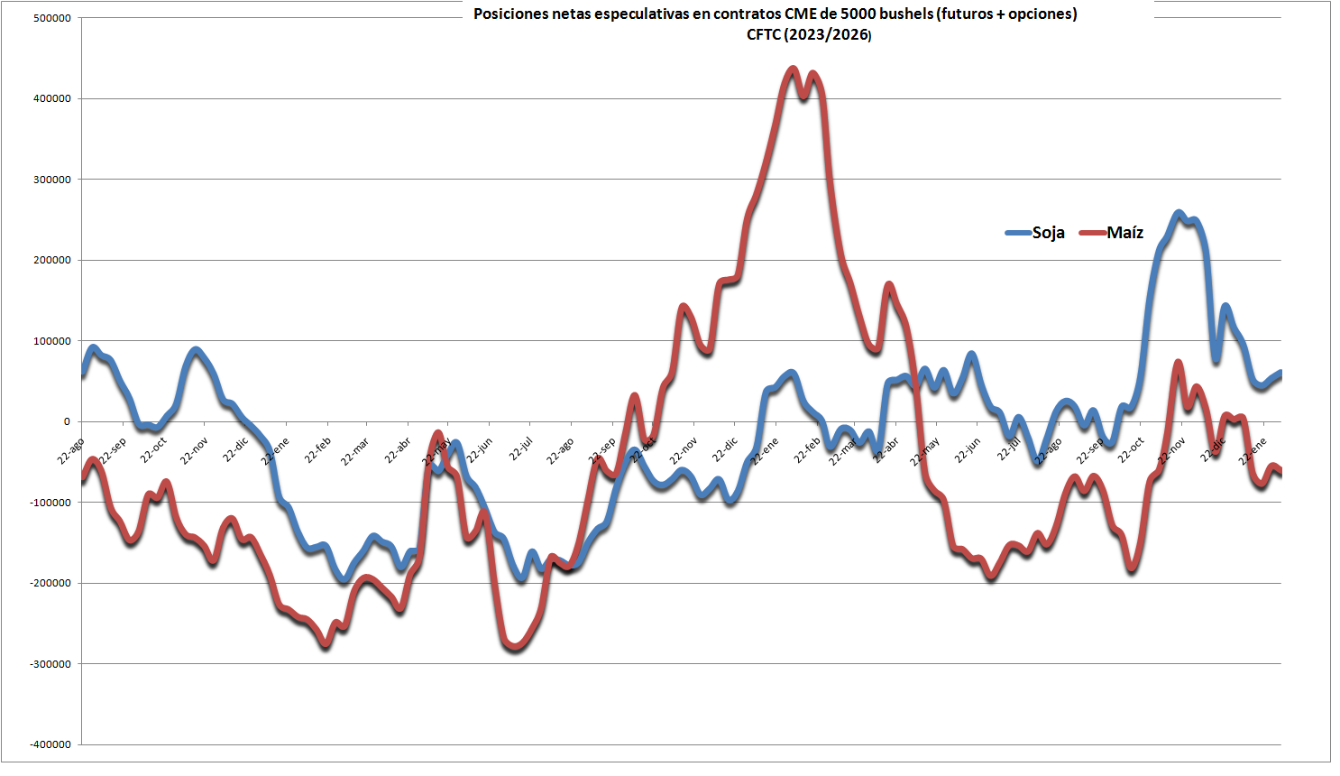 Así lo reflejan los datos publicados este viernes por la Commodity Futures Trading Commission. El pasado martes la posición neta especulativa en contratos futuros y opciones de soja en el CME se incrementó en un 13% con respecto a la semana previa, mientras que en el caso de maíz siguió bajando.