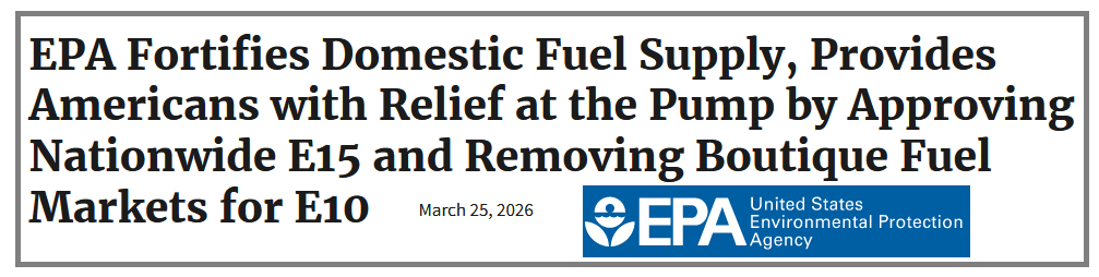 Este miércoles la Agencia Ambiental de EE.UU. (EPA) emitió una exención temporal de emergencia para combustibles que permite la venta a nivel nacional de E15 (nafta mezclada con un 15% de bioetanol) y elimina todos los impedimentos para la venta de E10 en todo el país.