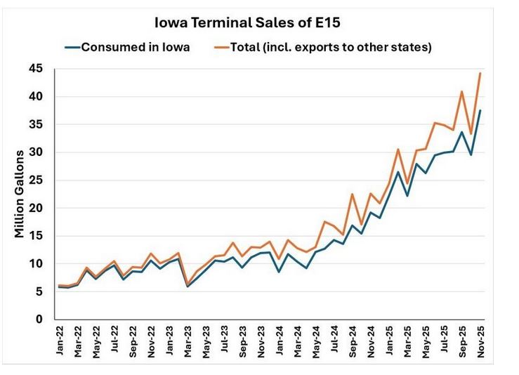 “En Iowa, por ejemplo, el E15 representó aproximadamente el 25% de las ventas totales de nafta en noviembre pasado, prácticamente el doble que a principios de 2025. Y con la aprobación legal del E15 en California en octubre, RFA está trabajando con los minoristas de ese Estado para que esta mezcla más asequible esté disponible para los conductores lo antes posible”, indicó la entidad por medio de un comunicado.