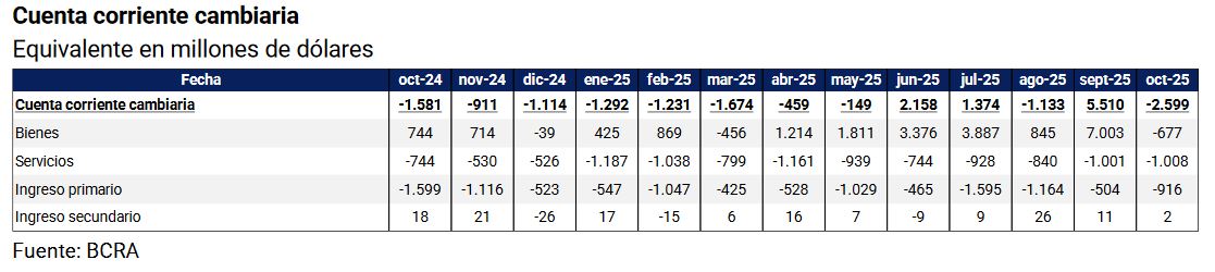 En ese marco, el balance cambiario de octubre, según indicó el BCRA, fue de -2599 millones de dólares, el déficit más elevado desde noviembre de 2017.