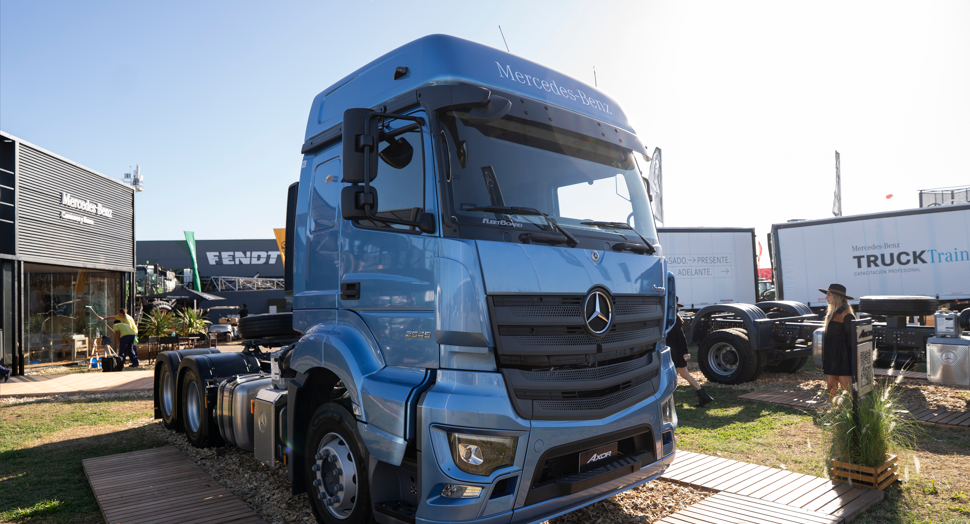 Mercedes-Benz Camiones y Buses: la marca alemana exhibió en su stand el último lanzamiento que tuvo en el país, el extra pesado Axor que regresó al mercado local. con variantes tractor y chasis, además de exhibir el resto de la gama que ofrece en la Argentina. Otra de sus atracciones fue la incorporación del simulador de TruckTraining, una nueva herramienta de capacitación para la profesionalización del transporte, equipada con tecnología envolvente de tres pantallas, capacidad para simular rutas y condiciones climáticas y que se incorpora al plan de capacitación a clientes.