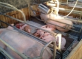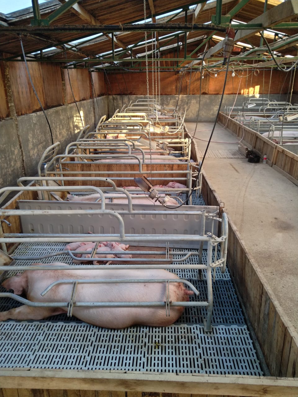 Continúa el riograndense: “Hemos logrado montar la granja con la máxima profesionalidad posible en nuestro país. Para los animales desde que nacen hasta los 40 a 50 kilos, usamos pisos plásticos. Luego, los que dejan la recría pasan a estar sobre slats o “rejillas” de hormigón elaborado, utilizadas como pisos higiénicos para los corrales de las cerdas, y los cielorrasos con poliuretano expandido, con calefacción a leña y a gas, porque tenemos un promedio de 12 a 14 grados bajo cero, en invierno”.