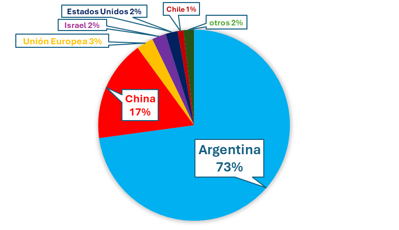 En cuestión de destinos China mantiene su predominio (63% de las exportaciones), aunque redujo las cantidades, parcialmente compensadas por el crecimiento de Estados Unidos e Israel.