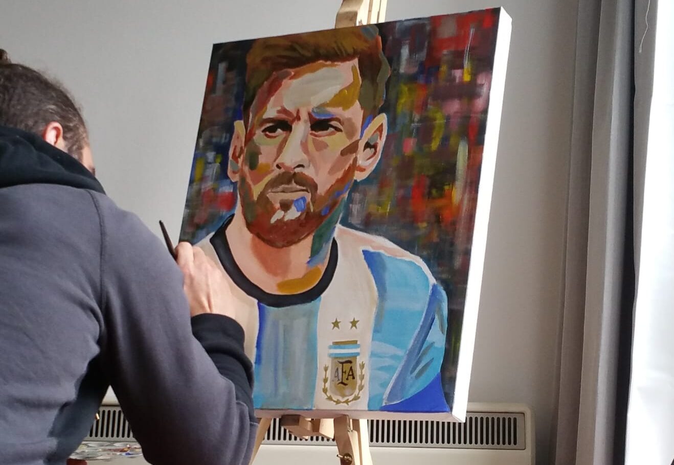 Lo cierto es que Matías empezó retratando a sus amigos jugadores, al punto que los deslumbró con su talento entonces todos comenzaron a pedirle. Como es muy disciplinado, hoy le gusta levantarse temprano y, mientras prepara el mate, se pone a pintar. De hobby pasó a ser su trabajo.